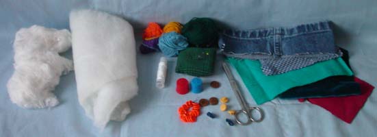 Основной материал игрушки - синтепон, вата или кусочки любой рыхлой ткани белого цвета.
