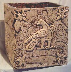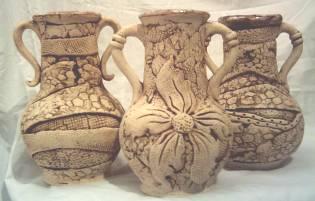 В шамотную керамику, которую я произвожу, а точнее сказать, собирю по кусочкам каждую вещь (технология шамота) эклектика вдохнула новую жизнь, например, в такие забытые предметы нашего быта, как крынки. Мной задумана разработка целой серии-коллекции крынок, которая так и будет называться - "Новая жизнь крынки".Как художника меня интересуют символы древнего мира, в результате изучения которых появились панно "Реинкарнация", вазы, настенные плитки с крылатым персидским львом с царского трона, означающим "бдительность", вазы, блюда "Клеопатра". Древнерусские символы-обереги несут в себе функцию защитников дома, благополучия дома. Например, древнерусский журавль наравне с соловьями и аистами считался "божьей птицей". Символика журавля связана с солнцем, их прилет и отлет, выведение птенцов связано с тремя фазами солнечного цикла – весенним и осенним равноденствием и летним солнцестоянием. В орнаментах он вместе с растениями означает "вода-солнце-живите". "Журавль", "Птица-оберег" использовались в деревянных орнаментах дома, ворот, узорах тканей.