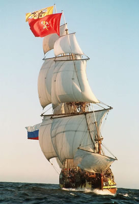 Современный фрегат «Штандарт» - точная и действующая копия флагманского корабля Петра I, построенного в 1703 году.