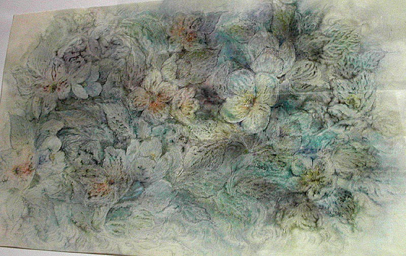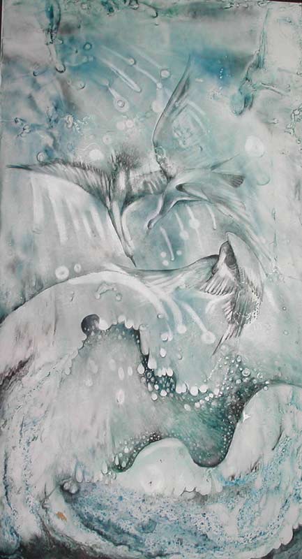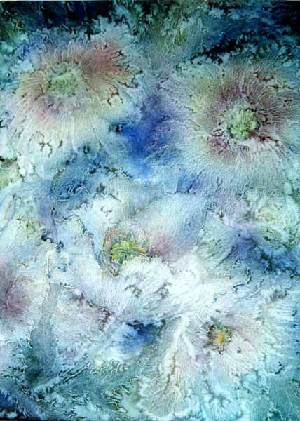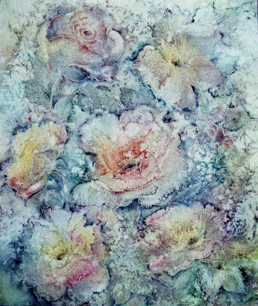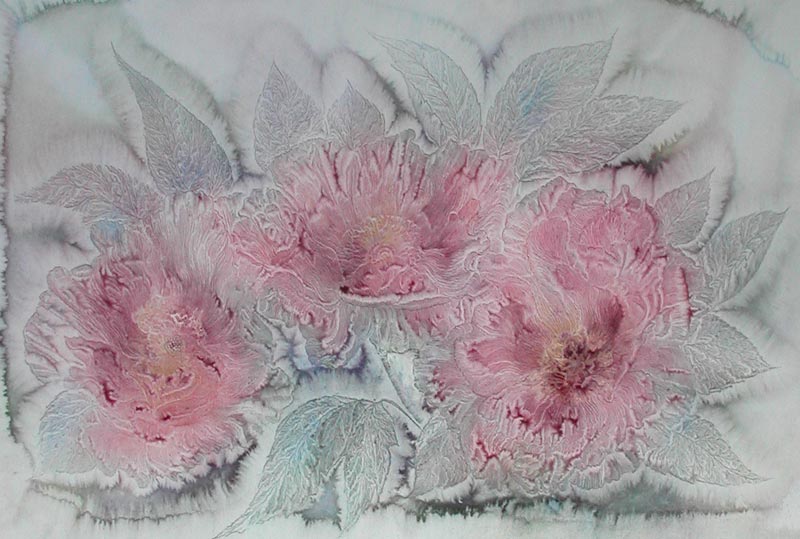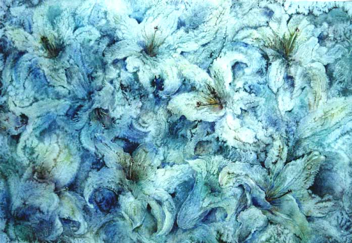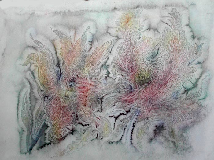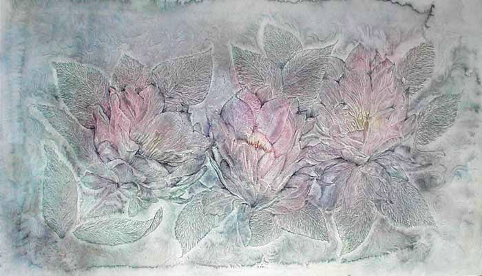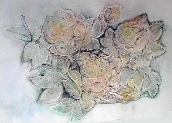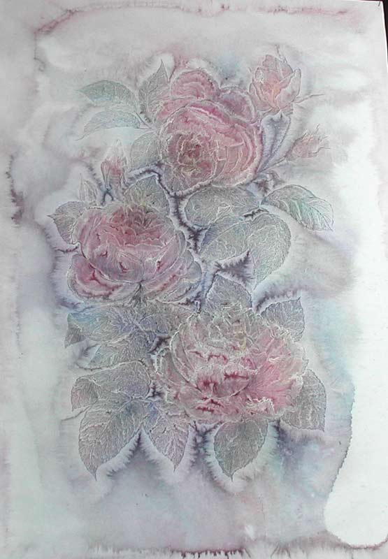 Работает в смешанной технике: бумага, масло, акварель.