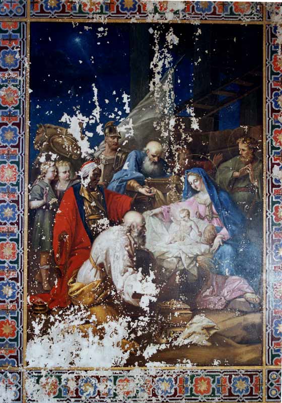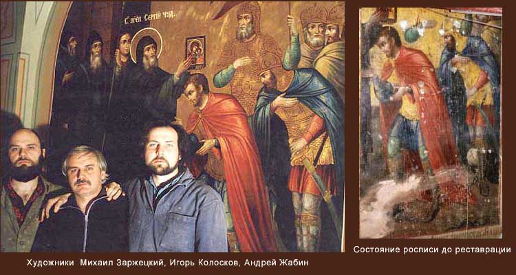 Свод алтаря Верхнего Храма Спасо-Преображенского Собора до реставрации и после