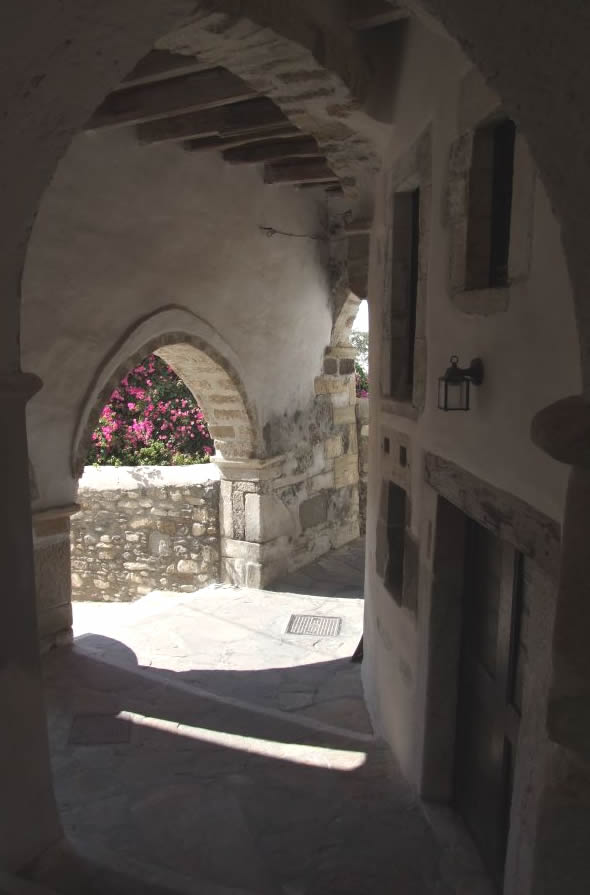 Над портом в гору поднимается Хора, т.е. столица, с тем же названием, что и остров - Наксос. Наверху - крепость кастро (она же - Венецианский замок), в ее стены вписались стены жилых домов. В крепости и сейчас живут люди. Многие дома с родовыми гербами.