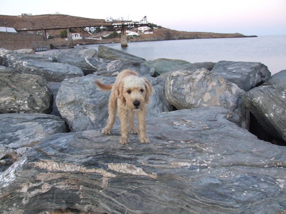 Стоянок для яхт немного - пирс протянулся одной линией вдоль волнореза из огромных каменных глыб с интересным слоистым рисунком. Внутри порта мелководье, там стоят небольшие рыбачьи суденышки. Пока привязывали яхту - прибежали два рыжих веселых щенка с длинными хвостами, явно близнецы. Я, естественно, стала их кормить. Потом один убежал, а другой остался со мной играть. Это заметили немцы с яхты невдалеке, один из них в этот момент принимал душ, он выскочил на пирс весь в пене и радостно стал тискать и играть со щенком. Оба были счастливы. Я вскарабкалась на камни волнореза и наблюдала, как в бухту в темноте плавно входят яхты с красными и зелеными ходовыми огоньками.