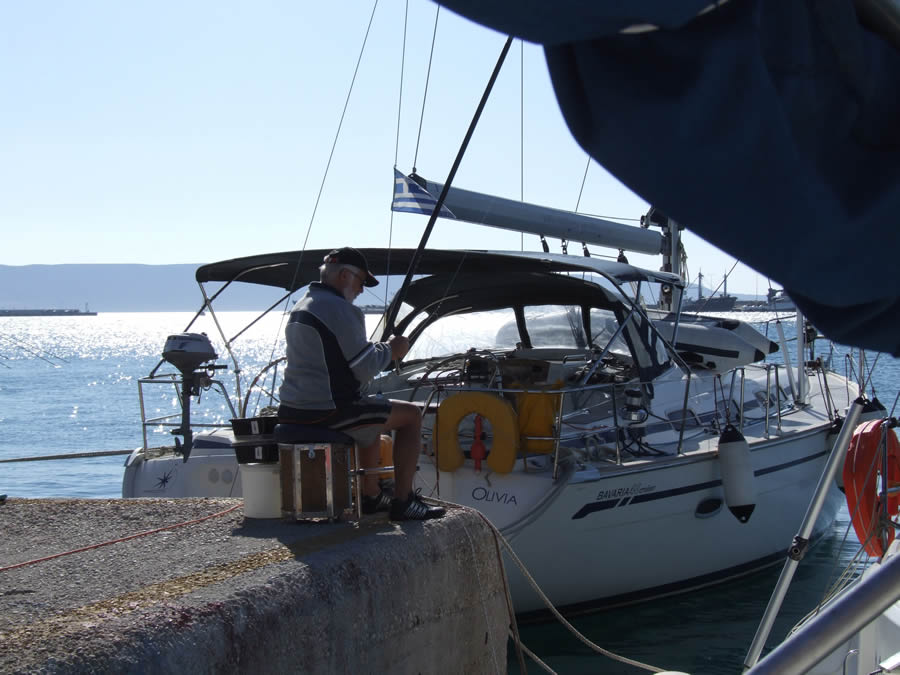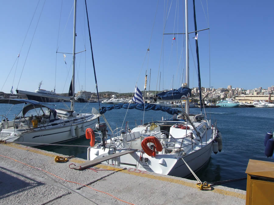 Около 16 часов, за час до назначенного времени, пришвартовались у причала компании "Верникос", потому что на пирсе наших "Афинских яхт" не оказалось свободного места. Яхту должны были принимать утром следующего дня, но нам предложили сделать это в тот же день. Мы, к радости "Афинских яхт", согласились. Трое парней немедленно приехали с аквалангом, следом подошла машина с топливом, очень удобно - не пришлось швартоваться к заправке.