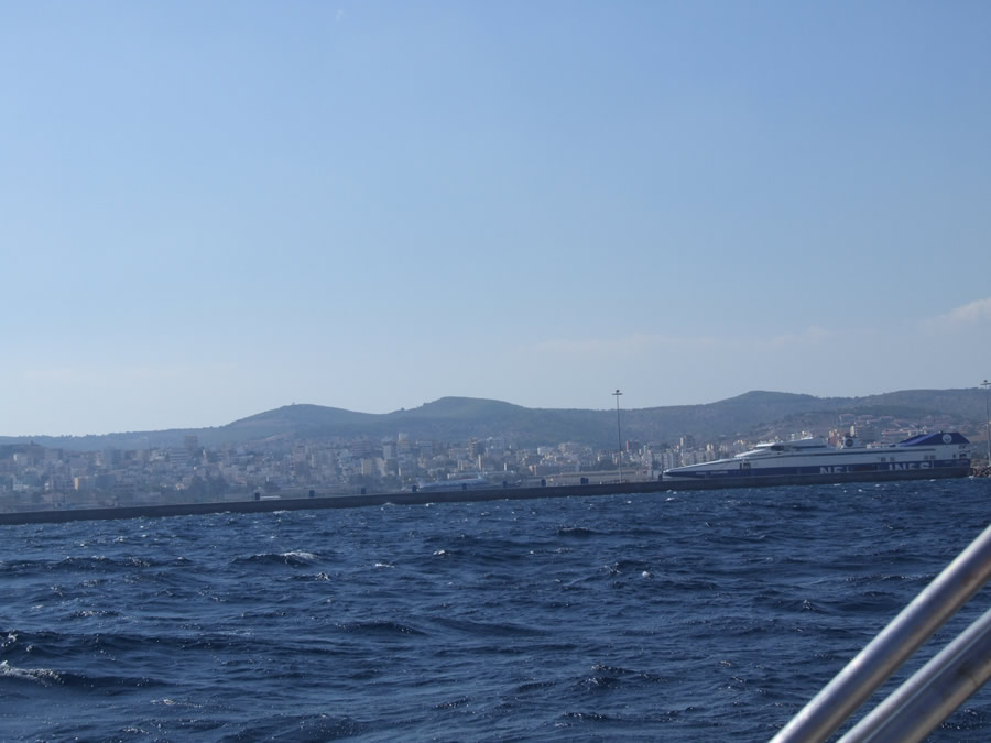 Уже по пути в Афины, проезжая вдоль берега, увидели, что нерогода была всего лишь ленивой репетицией сегодняшнего. Бурлящее море в барашках. Ни одного паруса. И только тяжелые сухогрузы идут своей муравьиной тропой.