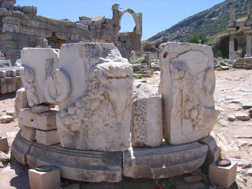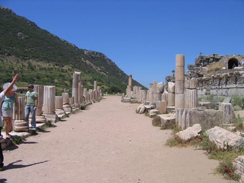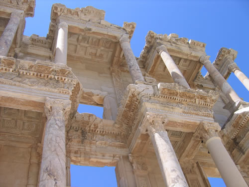 Говорят, что в Эфесе самые большие в мире античные руины. На мой взгляд, сирийская Пальмира не меньше. Только туристов в Эфесе значительно больше. Не буду перечислять, в каком веке до нашей эры и что построили. Сомневаюсь. Много надписей на греческом языке, есть с христианскими символами, которые никак не похожи на позднее "освещение" языческих текстов. Слишком безупречно вписываются в текст. А на одном "античном" барельефе последовательно изображены рыбы и крест. Все как есть символы Иисуса Христа.