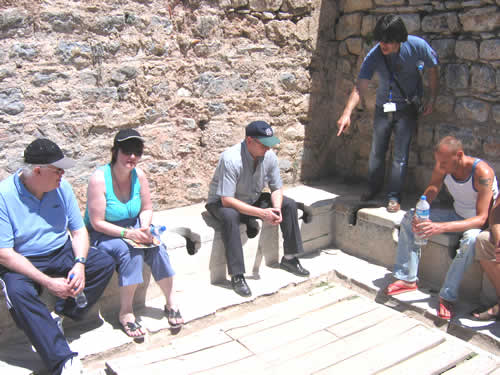 В городе есть старинные общественные туалеты - отверстия в виде большой скважины рядком на десятки персон, бани, библиотека, самый большой в мире театр на 25 тыс. человек, малый театр, бордель (почему именно бордель? На него, якобы, указывает отпечаток изящной женской ступни на каменной мостовой гренадерского 45-46 размера), сенат, мэрия, рынок. Доказательства, если и были, то разнесены по музеям. И в основном не по турецким.