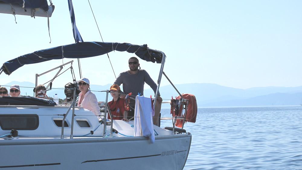 В составе экипажа яхты капитана Александра Чомского «Polo 3» был его маленький сын и хрупкие девушки, неудивительно, что он с особой тщательностью проверял спасательные средства. Саша приехал в Афины за неделю до начала регаты, объездил острова и приготовил контрольные точки для игры RUNNER, конечно, договорившись предварительно с местными властями. И в свободный от гонок день предложил сразиться участникам регаты . Тонкостей игры я не поняла – участники помчались за первой подсказкой в Эпидаврос, а наша судейская яхта ушла к месту финиша в укромную бухту к о. Докос. И вскоре зафиксировали победный финиш единственной яхты, уложившейся во временные рамки, «Veni», капитан Александр Негода. Обидно, что вторая яхта подошла спустя секунды после истечения контрольного времени - задание оказалось непростым.
