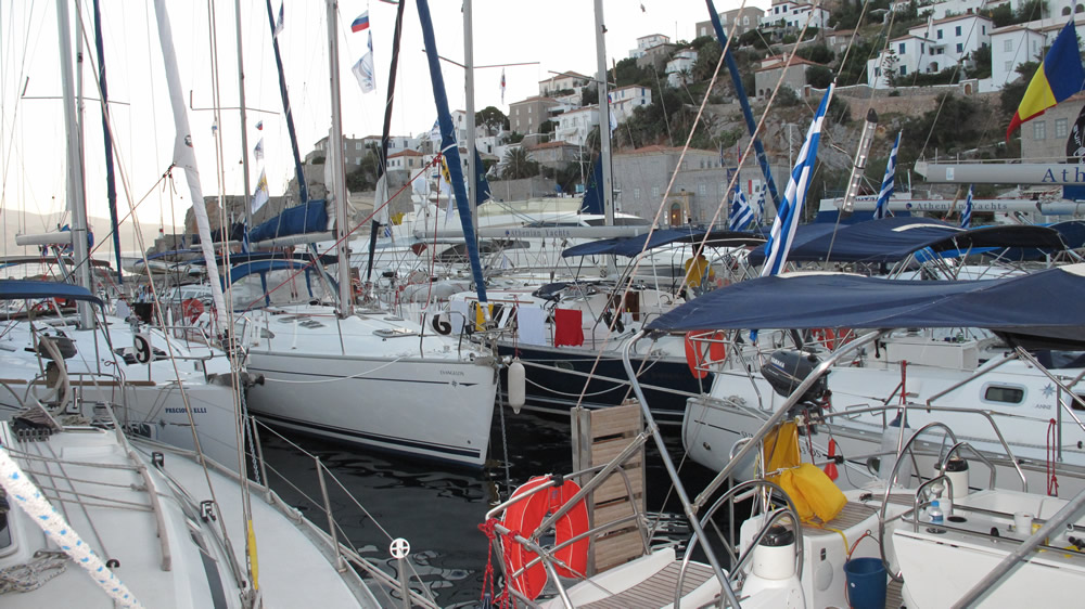 Мы подошли к Поросу 30 апреля, здесь уже начинали собираться роскошные моторные яхты для участия в выставке. Когда возвращались через 3 дня, яхт заметно прибавилось.