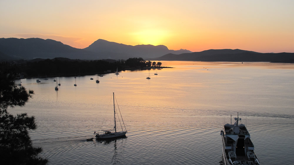 К Эпидавросу подошли на закате. Бухта встретила нас густым приятным ароматом цветущих апельсиновых и мандариновых деревьев. Казалось, яхта идет по волшебному ароматному морю. Он на порядок превзошел запах черемухи от трех цветущих деревьев возле моего дома и даже запах парфюма в магазине Sephora на Елисейских Полях. В какие только сказки не внесет парусная яхта!
