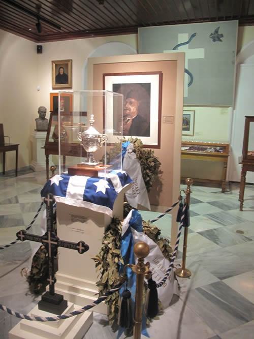 Богатая экспозиция музея отражает полную событий историю острова, ставшим центром исторических событий в годы борьбы за независимость, давшем Греции несколько десятков адмиралов, включая командующих флотом, выдающихся политиков, в том числе 5 премьер-министров и президента Греческой республики.