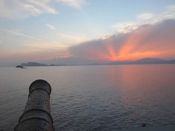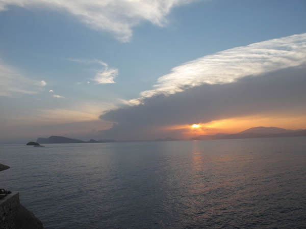 Остров Идра находится в Сароническом заливе недалеко от юго-восточного побережья полуострова Пелопоннес (на фотографии слева солнце как раз садится за Пелопоннес).