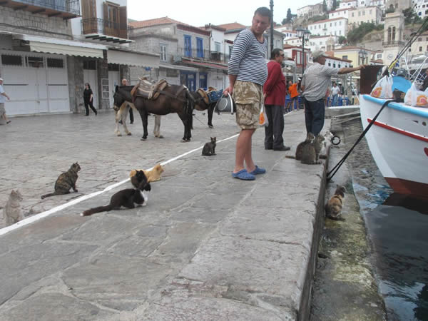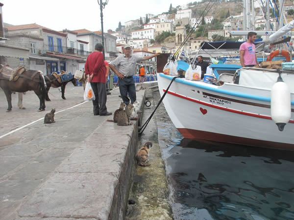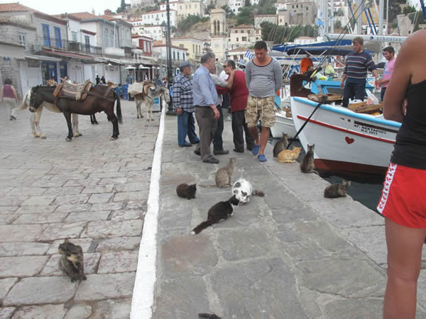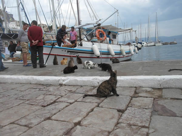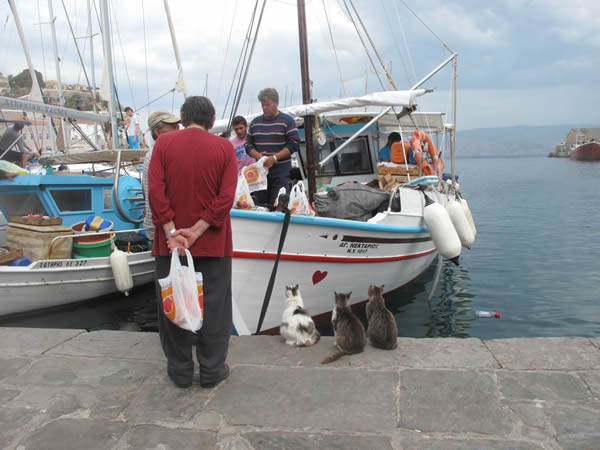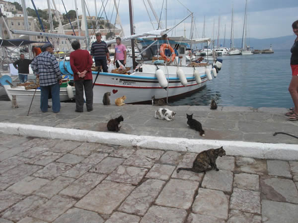 Вместе с местнвми жителями рыбаков встречают портовые кошки.