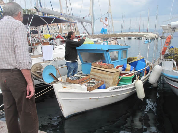 Ранним утром с уловом вернулись рыбаки, мустные жители пришли на пирс за свежей рыбой,