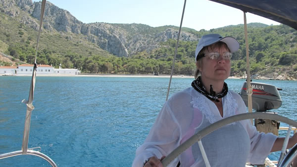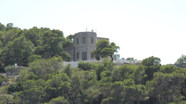 К сожалению, скудное свободное время на регате не позволило подняться ни к одному из монастырей, я смогла лишь прогуляться вдоль моря к бухте Мандраки по хорошей тропинке. В бухте стоит несколько роскошных вилл и им под стать большие моторные яхты. Над виллами расположилась небольшая церквушка. Конечно же, она была закрыта.