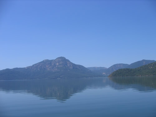 Несколько стоянок в живописных местах и обед. Вода прохладная из-за множества ключей, что для нам, русских людей, некритично. У нас в разгар лета в Москве-реке вода холоднее. За 4 стоянки увидела тонких рыб-флейт тёмного цвета 3 шт., несколько серых невзрачных рыбок, с десяток черных морских ежей, белоснежные тазовые кости явно человека. И всё. Короче – с маской плавать никакого кайфа. Зато покрытые растительностью берега, разнообразные красивые суденышки с парусами и без оных вокруг – заглядишься. Турки - хорошие мореходы. На одной стоянке туристам дали хлеб, чтобы кормить рыб. Я не стала этого делать по идейным соображениям - не надо нарушать экологическое равновесие, пусть друг друга кушают. Это им полезнее.