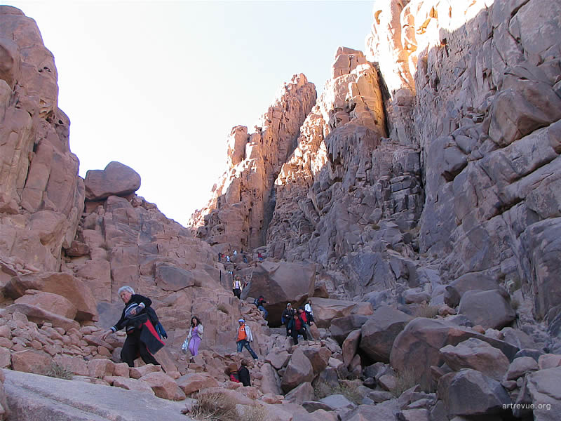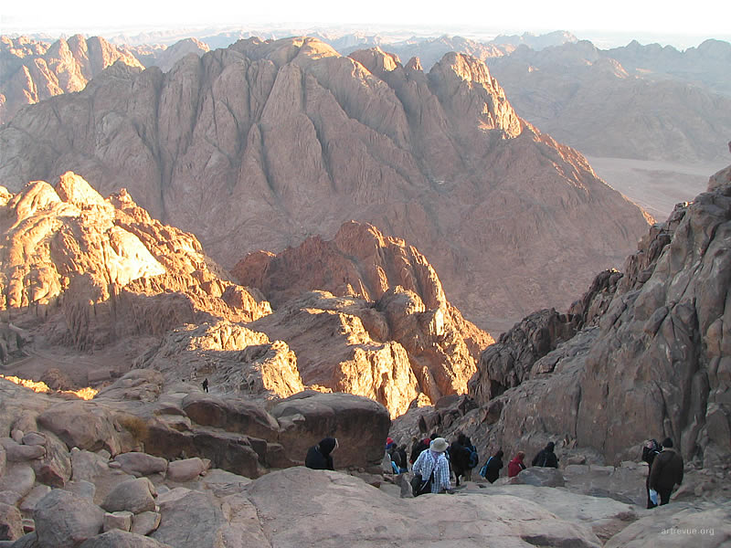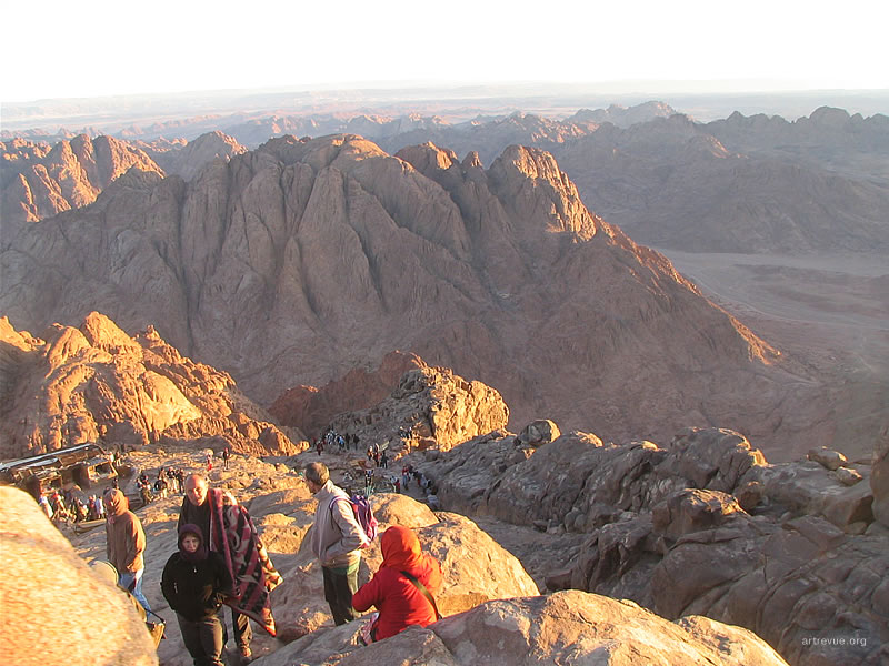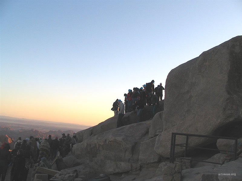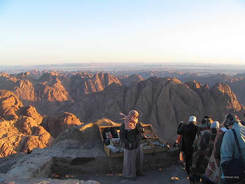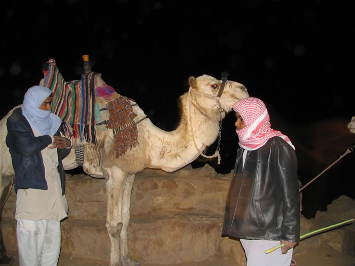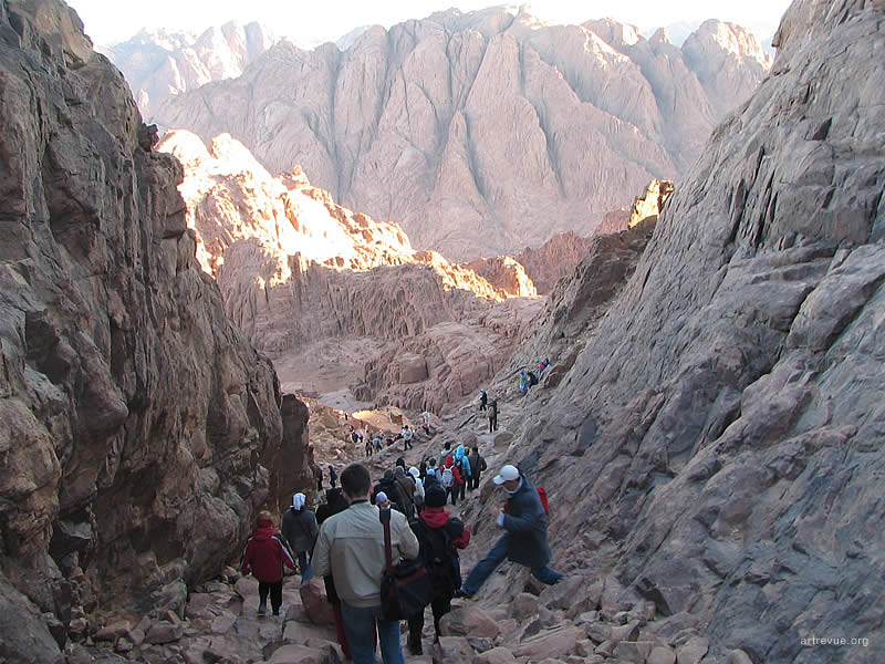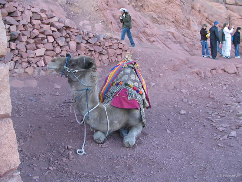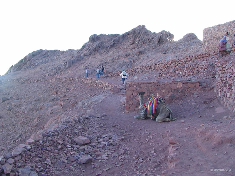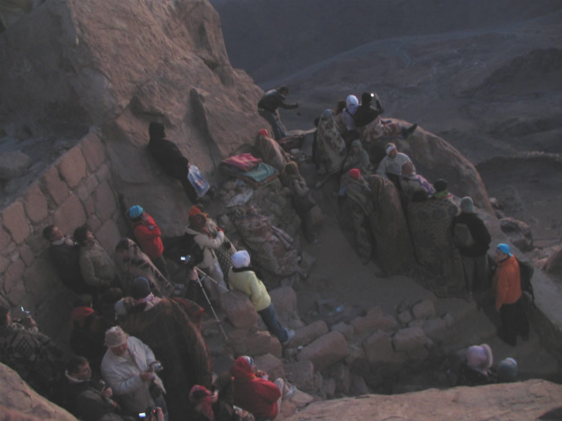 Каждую ночь толпы или отважных, или не отдающих себе отчета в трудностях пути туристов карабкаются на священную гору и встречают там рассвет. Их сопровождают проводники-бедуины и погонщики верблюдов. За 15 долларов можно проехаться на этом величественном животном, но непосредственно до самой вершины они туристов не поднимут, очень круто. Последние 750 разновеликих каменных ступеней придется преодолеть самостоятельно. По пути есть несколько мест для привала, где можно посидеть, отдохнуть, купить еду и напитки.